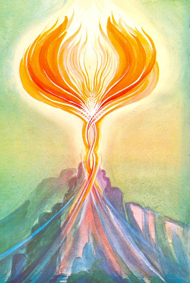Daniel:” …..His throne like flames of fire: the wheels of it like a burning fire. A swift stream of fire issued forth from before Him”. Here also the wheels, chakra’s, and the flame like energies. The cherubim in Ezekiel’s vision are described as a part animal and part human, sphinxlike. This image is cultural specific, Ezekiel lived in Babylon were sphinxlike beings, the karibus were depicted, they were a winged, eagle-headed angelic deities. This figure originated in Mesopotamia; they were the guardians of the temples and palaces in Sumer, and Babylon. Cherub is the Jewish equivalent for karibu. Ezekiel lived in Babylon where there were statues of the karibus on the temple walls. However the perception of the subtle energy flame like streams and the chakras, are concentrations of conscious, subtle energies which is another kind of phenomenon. This differs from the perception of the cultural specific ideoplastic formed humanoid or sphinxlike images.