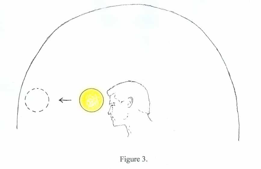 After one or two minutes the next shift came to a higher level. The colors at this level were brighter than they were at the lower level. They occupied about the same position as in the lower-level field, with the exception of the yellow color, which on this level was an orb of yellow energy about 20 cm across, see figure 3. ↓