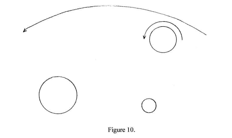As each orb appears and follow its elliptical orbit, it produces a (non-physical) musical sound, which continues until the orb disappears. The more rapid the orb’s rotation, the faster the tempo of the musical sound it produces (see figure 10).