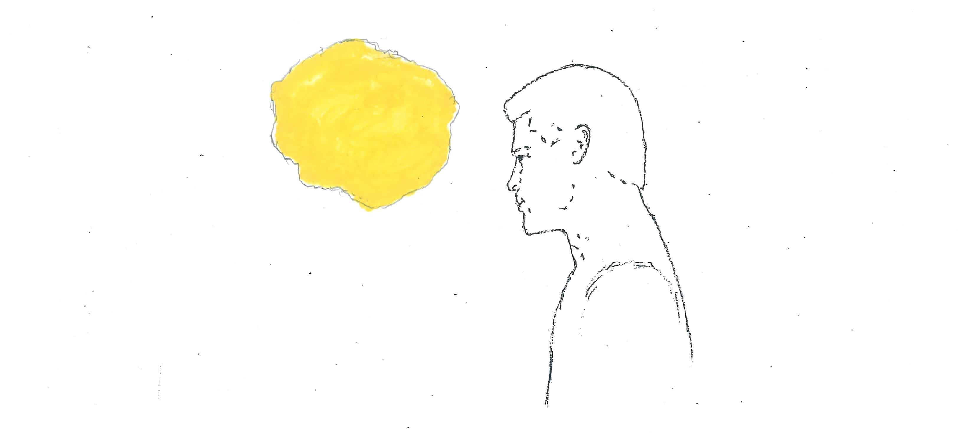 In the higher aura fields [Higher here means not higher in space, but in a higher dimension.], the pulsating of this energy is visible as a series of subtle energy orbs, normally of a yellow or violet color, moving outwards from the front of the head. During the state of mystical ecstasy, these yellow and violet orbs (which are connected with the functioning of the big yellow and violet nadis going to the eyebrow center (see figure 37) pulsate alternately yellow then violet, then yellow and so on, in front of the forehead.