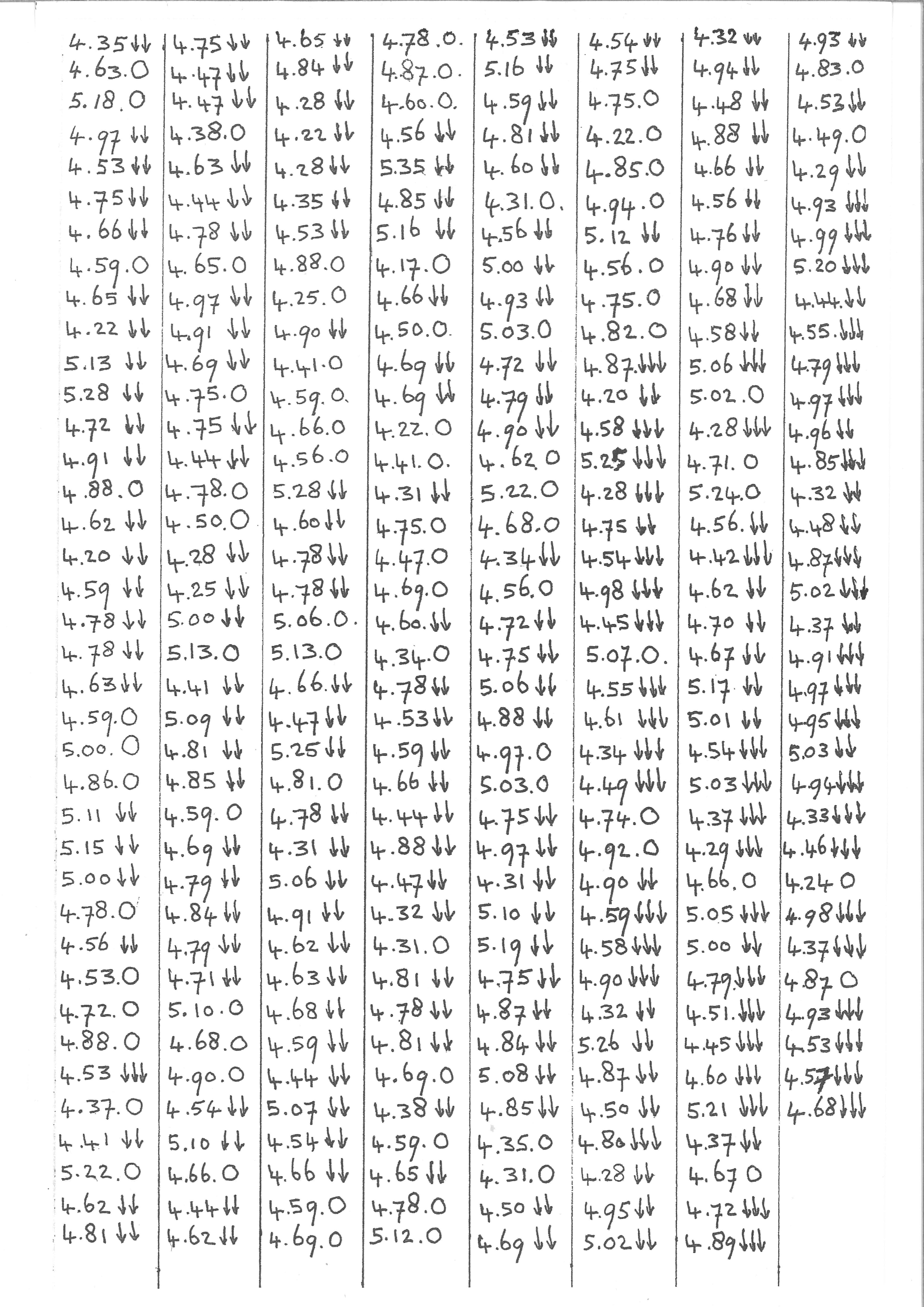 The experiment was repeated 300 times (see the list) which gave an average of 4.7 seconds.