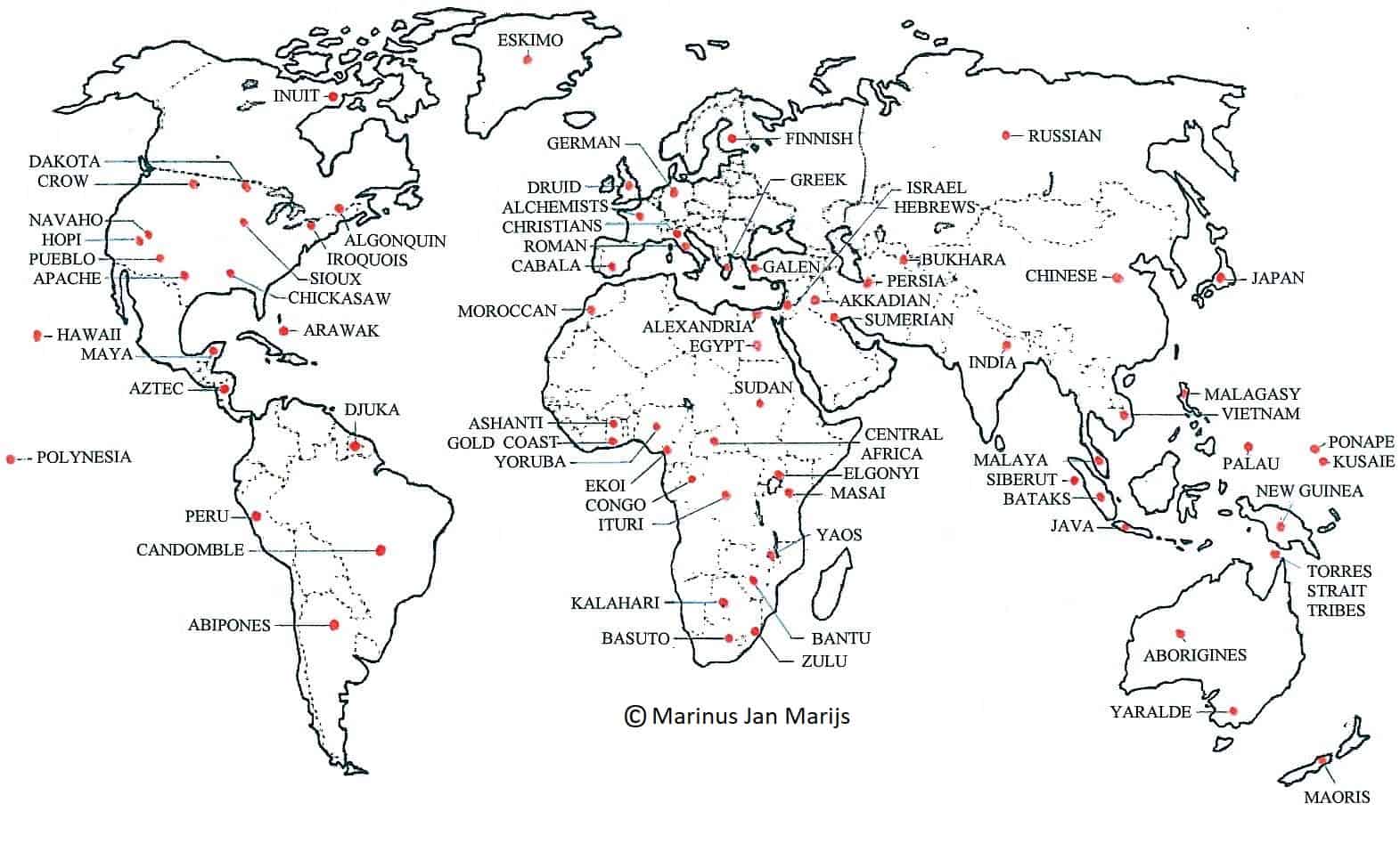 The map of the world and the tables below give an overview of cross-cultural-, geographical- and historical data.These data might be insufficient by themselves to prove the existence of subtle energies. The existence of a ‘consensus gentium’ or agreement between all people (which was an ancient criterion of truth) is not a scientifically sound principle to prove the existence of phenomena, because widely upheld beliefs can be false. However, the cross-cultural data presented here can be a starting point for further investigation.